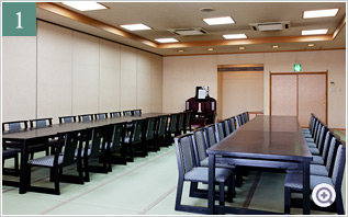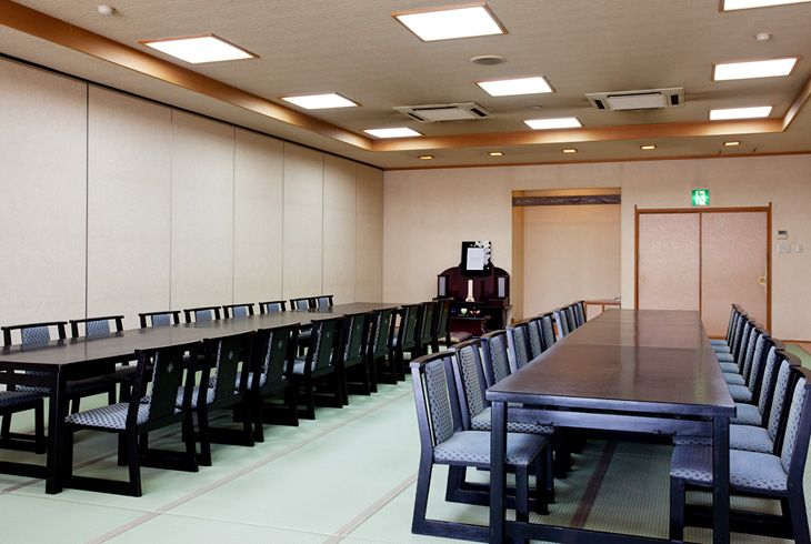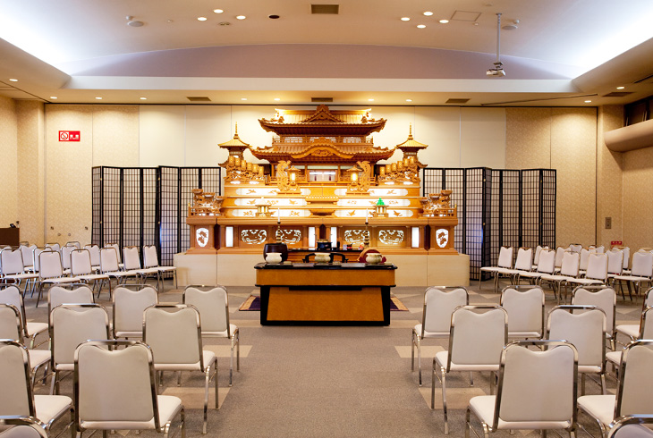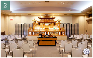 - 式場を分割できますので小規模のご葬儀にも対応できます。170名様が着座可能です。